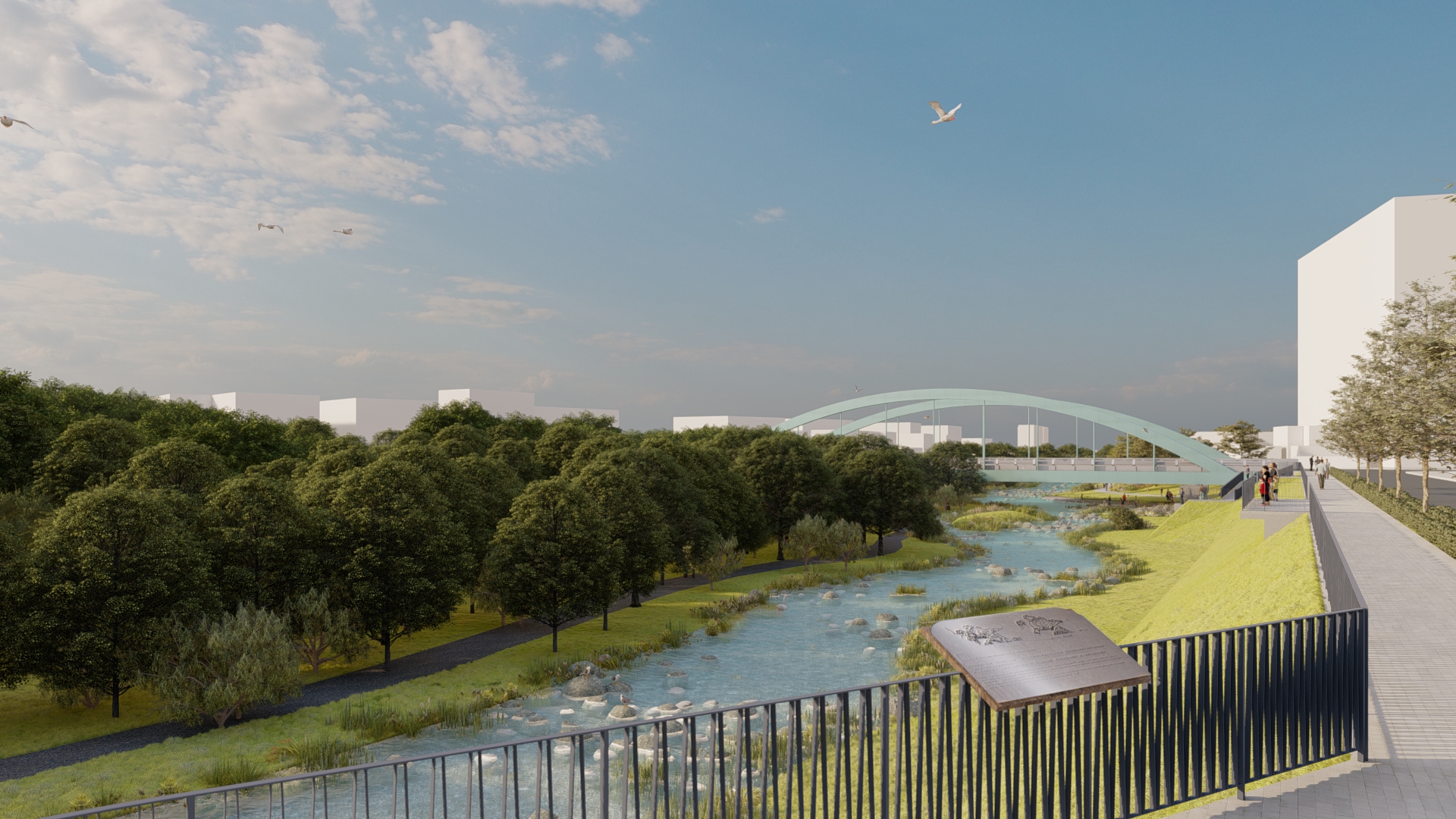 而惠來溪及潮洋溪水環境改善計畫(第二期),則延續一期成果,將治理範圍拓展至上游,強化行人動線與植栽生長空間,並融合社區節點,營造舒適的綠廊。而柳川水環境改善整體計劃第三期以「低衝擊、低碳、都市綠洲、河川與人的波動」為願景,採減量混凝土、低衝擊開發與綠色工法,並增加綠覆率,不僅拉近人與河川的距離,也為生物營造合宜棲地。