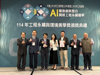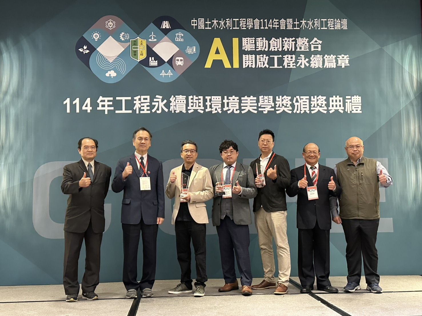 114年「工程永續與環境美學獎」頒獎典禮在今〈21〉日舉辦,台中市政府水利局在環境與生態類中榮獲5項殊榮,「東大溪水環境及鄰近區域環境改善計畫」獲特優獎;「台中市綠川(信義南街-大明路)水環境改善計畫工程B標-台中市綠川水環境改善計畫(興大園道亮點河岸計畫)」、「旱溝排水水環境改善計畫中部科學(后里)園區綠10-2溪畔景觀池工程」、「軟埤仔溪水環境改善工程」等3案獲優等獎;「台中市小水力發電開發計畫-食水嵙溪排水口發電廠興建工程」獲佳作獎,彰顯市府在推動優質水環境及發展綠能永續上的努力備受肯定。